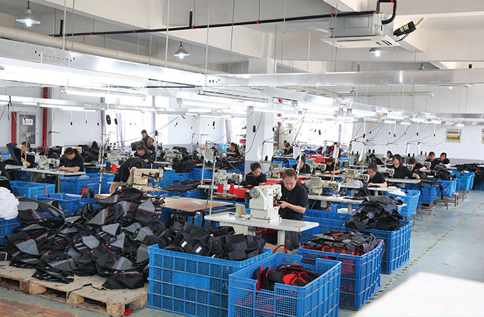 Bengkel kami adalah kira-kira 8,000 m2, Kami mempunyai sejumlah 150 pekerja, termasuk 3 pereka, 20 pemeriksa, kira-kira 100 set pelbagai mesin jahit, 5 set mesin pemotong dan pengosongan, serta pelbagai peralatan ujian untuk memastikan semua produk yang dihantar kepada pelanggan memenuhi keperluan mereka .